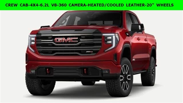 iPhone/ Android Navigation compatible, Automatic Headlights, Rearview Camera, Bluetooth®, Leather, Towing Package / Hitch, Heated and Vented Front Seats, Heated 2nd Row, Heated Steering Wheel, Remote Starter System, LED Cargo Box Lighting, Bose Premium Speaker System, Mutli-function Steering Wheel, 4X4, Apple Carplay, ONSTAR, Push Button Start, Remote Keyless Entry, Andoid Auto, Premium Delivery Service Available, Sierra 1500 AT4, 4D Crew Cab, EcoTec3 6.2L V8, 4WD, Volcanic Red Tintcoat, Jet Black w/Kalahari Accents w/Perforated Front Leather Seat Trim, 120-Volt Bed Mounted Power Outlet, 120-Volt Interior Power Outlet, 170 Amp Alternator, 2 Charge/Data USB Ports Inside Center Console, 2 Type-C Charge-Only Rear USB Ports, 2 USB Ports, 3.23 Rear Axle Ratio, Apple CarPlay/Android Auto, Auto-Locking Rear Differential, Automatic temperature control, Bed View Camera, Black Chrome Grille Insert Bars, Deep-Tinted Glass, Electric Rear-Window Defogger, Emergency communication system: OnStar, Floor-Mounted Center Console, Following Distance Indicator, Forward Collision Alert, Front Bucket Seats, Front dual zone A/C, Front Pedestrian Braking, Front Rain-Sensing Wipers, HD Surround Vision, Heated 2nd Row Outboard Seats, Heated front seats, Heated rear seats, Heated steering wheel, Heavy-Duty Air Filter, Hill Descent Control, Hitch Guidance, Hitch View, Integrated Trailer Brake Controller, LED Cargo Area Lighting, Low tire pressure warning, Multicolor 15″ Diagonal Head-Up Display, Navigation System, OnStar Services Capable, Perforated Front Leather Seat Trim, Perimeter Lighting, Power Door Locks, Power driver seat, Power passenger seat, Preferred Equipment Group 4SB, Premium Bose 7-Speaker Sound System, Push Button Start, Rain sensing wipers, Rear Camera Mirror, Rear Cross Traffic Braking, Rear Pedestrian Detection, Rear Wheelhouse Liners, Red Recovery Hooks, Remote keyless entry, Remote Vehicle Starter System, Safety Alert Seat, Steering Wheel Audio Controls, Technology Package, Trailer Camera Provisions, Trailer Side Blind Zone Alert, Trailering Package, Ventilated front seats, Wheels: 20″ x 9″ Machined Aluminum, Wi-Fi Hotspot Capable, Wireless Apple CarPlay/Wireless Android Auto, Wireless Charging.