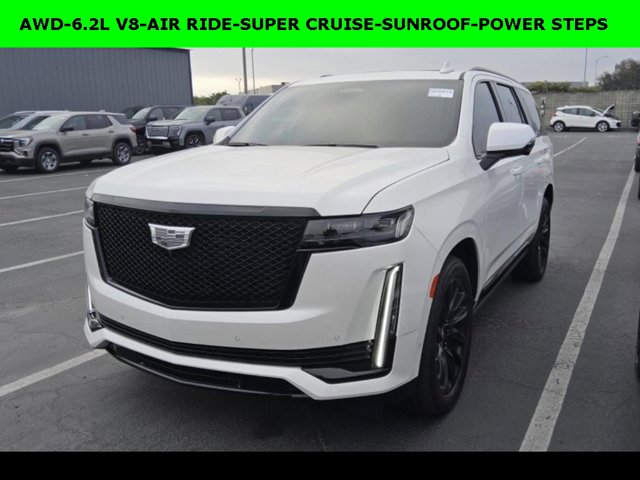 New ARRIVAL PHOTOS COMING SOON!, iPhone/ Android Navigation compatible, Automatic Headlights, Rearview Camera, Bluetooth®, Leather, Sunroof / Moonroof, Towing Package / Hitch, Running Boards, Heated and Vented Front Seats, Heated 2nd Row, Heated Steering Wheel, Remote Starter System, Mutli-function Steering Wheel, 4X4, Includes the Remainder of the Factory Warranty, Extended Warranty Available, Apple Carplay, ONSTAR, 3rd Row Seats, Push Button Start, Remote Keyless Entry, Andoid Auto, Premium Delivery Service Available, Escalade Sport, 4D Sport Utility, 6.2L V8, 10-Speed Automatic, AWD, Crystal White Tricoat, Jet Black w/Leather Seating w/Precision Perforated Inserts, Adaptive Cruise Control, Air Ride Adaptive Suspension, AKG Studio 19-Speaker Audio System, Automatic Seat Belt Tightening, Body-Color Door Handles, Door Lock & Latch Shields, Electronic Limited-Slip Differential, Enhanced Automatic Emergency Braking, Enhanced Automatic Parking Assist, Glass Breakage Sensor, Gloss Black Escalade Nameplate (LPO), Heated & Ventilated Driver & Front Passenger Seats, Hitch Guidance w/Hitch View, Illuminating Front & Rear Sill Plates, Integrated Trailer Brake Controller, Monochrome Cadillac Emblems (LPO), Navigation System, Onyx Package (LPO), Power Panoramic Tilt-Sliding Sunroof, Preferred Equipment Group 1SC, Puddle Lamps w/Cadillac Crest (LPO), Rear Camera Mirror, Rear Camera Mirror Washer, Rear Cross Traffic Alert, Reconfigurable Full-Color Head-Up Display, Reverse Automatic Braking, Running Board Assist Steps, Smart Trailer Integration Indicator, Soft Closing Front & Rear Doors, Theft-Deterrent Alarm System, Touring Package, Trailer Side Blind Zone Alert, Vehicle Inclination Sensor, Vehicle Interior Movement Sensor, Wheels: 22″ 12-Spoke Gloss Black Alloy (LPO).
