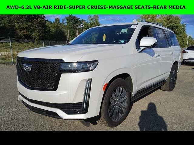 New ARRIVAL PHOTOS COMING SOON!, iPhone/ Android Navigation compatible, Automatic Headlights, Rearview Camera, Bluetooth®, Leather, Sunroof / Moonroof, Rear DVD Entertainment System, Towing Package / Hitch, Running Boards, Heated and Vented Front Seats, Heated 2nd Row, Heated Steering Wheel, Remote Starter System, Mutli-function Steering Wheel, 4X4, Includes the Remainder of the Factory Warranty, Extended Warranty Available, Apple Carplay, ONSTAR, 3rd Row Seats, Push Button Start, Remote Keyless Entry, Andoid Auto, Premium Delivery Service Available, Escalade Sport Platinum, 4D Sport Utility, 6.2L V8, 10-Speed Automatic, AWD, Crystal White Tricoat, Jet Black w/Full Semi-Aniline Leather Seats w/Mondrian Quilt, Adaptive Cruise Control, AKG Studio Reference 36-Speaker Audio System, All-Weather Floor Liner Package (LPO), All-Weather Integrated Cargo Liner (LPO), Automatic Seat Belt Tightening, Body-Color Door Handles, Door Lock & Latch Shields, Electronic Limited-Slip Differential, Enhanced Automatic Emergency Braking, Enhanced Automatic Parking Assist, Floor Console w/Covered Storage, Floor Liner Package (LPO), Glass Breakage Sensor, Heated & Ventilated Driver & Front Passenger Seats, Hitch Guidance w/Hitch View, Integrated Trailer Brake Controller, Navigation System, Platinum Interior Trim, Power Lumbar Massage Driver Seat, Power Lumbar Massage Front Passenger Seat, Power Panoramic Tilt-Sliding Sunroof, Preferred Equipment Group 1SH, Rear Camera Mirror, Rear Camera Mirror Washer, Rear Cross Traffic Alert, Rear Seat Entertainment System, Reconfigurable Full-Color Head-Up Display, Reverse Automatic Braking, Running Board Assist Steps, Smart Trailer Integration Indicator, Theft-Deterrent Alarm System, Touring Package, Trailer Side Blind Zone Alert, Vehicle Inclination Sensor, Vehicle Interior Movement Sensor, Wheels: 22″ 12-Spoke Gloss Black Alloy (LPO).
