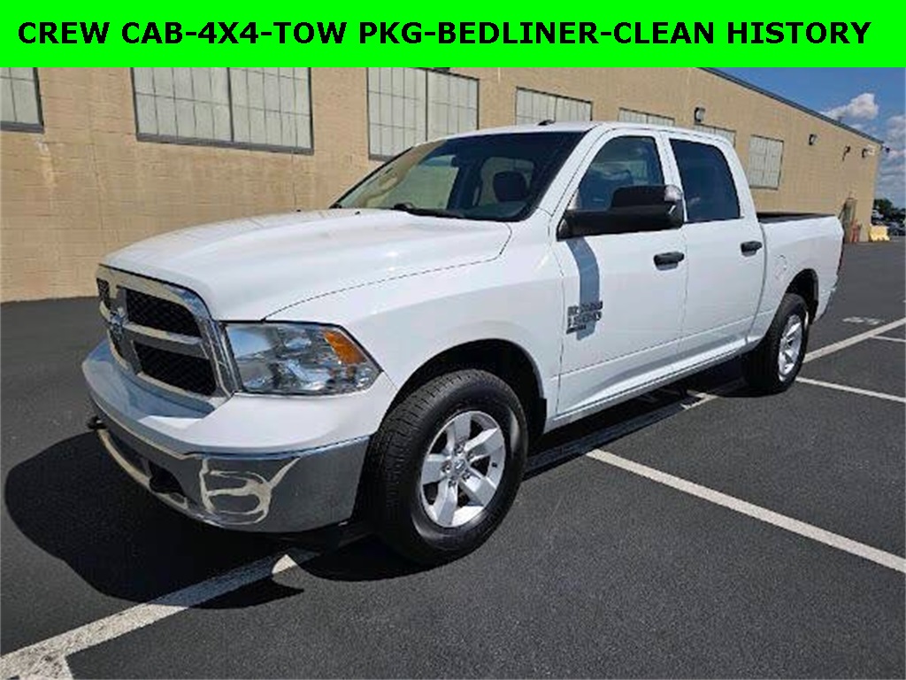 One Owner, Clean Autocheck / No Accidents, Factory Certified Preowned, Extended Warranty Available, Bluetooth® / Hands-free, Portable Audio Connection, Premium Wheels, Multi-function Steering Wheel, Trailer Hitch, 4×4/4WD, *Premium Delivery Service Available*, 1500 Classic Tradesman, 4D Crew Cab, 4WD, Bright White Clearcoat, Diesel Gray/Black w/Heavy Duty Vinyl 40/20/40 Split Bench Seat or Cloth 40/20/40 Bench Seat or Cloth 40/20/40 Bench Seat or Cloth 40/20/40 Premium Bench Seat or Cloth 40/20/40 Premium Bench Seat or Premium Cloth Bucket Seats, 17″ x 7″ Aluminum Wheels, Bright Front Bumper, Bright Grille, Bright Rear Bumper, Chrome Appearance Group, Chrome Appearance Group w/Body Color Fascia, Class IV Receiver Hitch, Power Black Trailer Tow Mirrors, Protection Group, Quick Order Package 29B Tradesman, Tow Hooks, Tradesman Package, Trailer Brake Control, Trailer Tow Group.