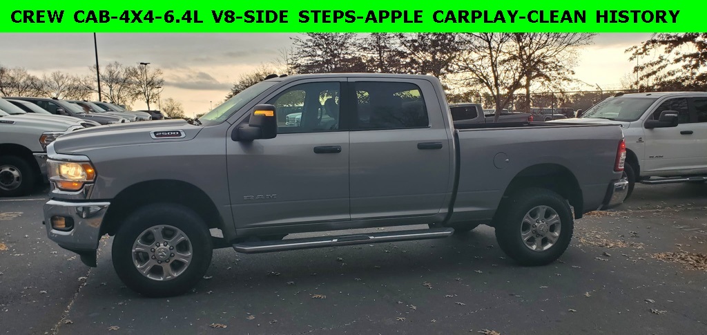 One Owner, Clean Autocheck / No Accidents, Factory Certified Preowned, Remaining Factory Warranty, Extended Warranty Available, Bluetooth® / Hands-free, Apple Car Play / Android Auto Compatible, Back-Up Camera w/ Guidelines, Portable Audio Connection, Multi-function Steering Wheel, Trailer Hitch, 4×4/4WD, Apple Carplay, Android Auto, *Premium Delivery Service Available*, iphone / Droid Navigation Compatible, 2500 Big Horn, 4D Crew Cab, 4WD, Billet Silver Metallic Clearcoat, Diesel Gray/Black w/Cloth 40/20/40 Bench Seat or Premium Cloth 40/20/40 Bench Seat or Heavy Duty Vinyl 40/20/40 Split Bench Seat or Premium Cloth Bucket Seats, 2nd Row In Floor Storage Bins, 4G LTE Wi-Fi Hot Spot, 8.4″ Touchscreen Display, Apple CarPlay, Auto Power-Folding Mirrors, Big Horn IP Badge, Black Exterior Mirrors, Bluetooth® Handsfree Phone & Audio, Center Hub, Connectivity – US/Canada, Dual Glove Boxes, Exterior Mirrors Courtesy Lamps, Exterior Mirrors w/Heating Element, Exterior Mirrors w/Supplemental Signals, Foam Bottle Insert (Door Trim Panel), Footwell Courtesy Lamp, For Details, Visit DriveUconnect.com, For More Info, Call 800-643-2112, Forward & Reverse Utility Lights, Front Fog Lamps, Global Telematics Box Module (TBM), Glove Box Lamp, Google Android Auto, GPS Antenna Input, Integrated Center Stack Radio, Integrated Voice Command w/Bluetooth®, Leather Wrapped Steering Wheel, Level 1 Equipment Group, Locking Lower Glove Box, Mirror Running Lights, Power Adjust Mirrors, Power Adjustable Convex Aux Mirrors, Power Heated Fold Telescope Mirrors, Power Telescoping Mirrors, Premium Cloth 40/20/40 Bench Seat, Quick Order Package 2GZ Big Horn, Radio: Uconnect 5 W w/8.4″ Display (A62), Rear Dome w/On/Off Switch Lamp, Selectable Tire Fill Alert, SiriusXM Radio Service, SiriusXM Satellite Radio, Steering Wheel Mounted Audio Controls, Wheels: 18″ x 8.0″ Polished Aluminum.