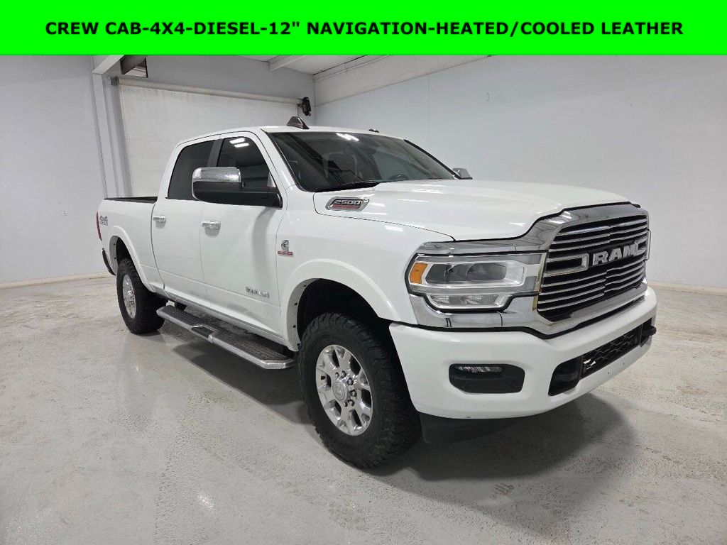 One Owner, Clean Autocheck / No Accidents, Factory Certified Preowned, Extended Warranty Available, Apple Car Play / Android Auto Compatible, Back-Up Camera w/ Guidelines, Heated Seats, Keyless Entry, Leather Seats, Multi-Zone Climate Control, Navigation, Portable Audio Connection, Premium Audio, Premium Wheels, Multi-function Steering Wheel, Trailer Hitch, 4×4/4WD, Remote Start, Spray-in Bedliner, Apple Carplay, Android Auto, Cooled Seats, *Premium Delivery Service Available*, iphone / Droid Navigation Compatible, 2500 Laramie, 4D Crew Cab, Cummins 6.7L I6 Turbodiesel, 4WD, Bright White Clearcoat, Black w/Leather Trim 40/20/40 Bench Seat or Leather Trimmed Bucket Seats, 220 Amp Alternator, 2nd Row In Floor Storage Bins, Auto High Beam Headlamp Control, Bed Utility Group, Body Color Bumper Group, Chrome Exterior Mirrors, Cold Weather Group, Diesel Exhaust Brake, Engine Block Heater, Exterior Mirrors Courtesy Lamps, Exterior Mirrors w/Heating Element, Exterior Mirrors w/Memory, Exterior Mirrors w/Supplemental Signals, Foam Bottle Insert (Door Trim Panel), Front Performance Tuned Shock Absorbers, GPS Navigation, Heavy Duty Snow Plow Prep Group, Hill Descent Control, Laramie Level A Equipment Group, LED Bed Lighting, Mirror Running Lights, Mirror-Mounted Aux Reverse Lamps, MOPAR Deployable Bed Step, MOPAR Spray In Bedliner, MOPAR Winter Front Grille Cover, Navigation System, Off Road Decal, Off Road Package, Painted Front Bumper, Painted Rear Bumper, Power Adjustable Convex Aux Mirrors, Power Adjustable Pedals w/Memory, Power Chrome Tow Mirrors w/Convex Spotter & Memory, Power Folding Mirrors, Quick Order Package 2HH Laramie, Radio/Driver Seat/Mirrors/Pedals Memory, Rain Sensitive Windshield Wipers, Rear Performance Tuned Shock Absorbers, Remote Tailgate Release, Tow Hooks, Trailer Tow Mirrors.