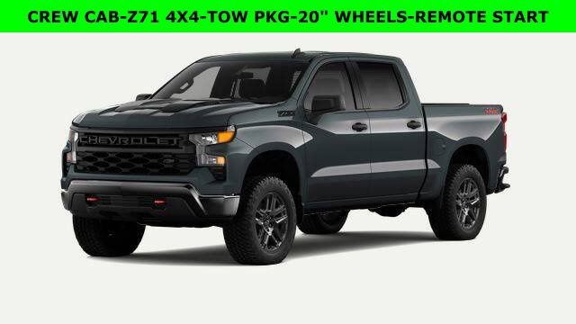 Automatic Headlights, Rearview Camera, Bluetooth®, Towing Package / Hitch, Remote Starter System, Mutli-function Steering Wheel, 4X4, Push Button Start, Remote Keyless Entry, Premium Delivery Service Available, Silverado 1500 Custom Trail Boss, 4D Crew Cab, 4WD, Cypress Gray, Jet Black w/Cloth Seat Trim, 120-Volt Bed Mounted Power Outlet, 120-Volt Interior Power Outlet, 220 Amp Alternator, 3.42 Rear Axle Ratio, 3.5″ Monochromatic Display Driver Info Center, 40/20/40 Front Split-Bench Seat, Auto-Locking Rear Differential, Bluetooth® For Phone, Cloth Seat Trim, Custom Convenience Package, Deep-Tinted Glass, Dual front side impact airbags, Electric Rear-Window Defogger, Electronic Cruise Control, Emergency communication system: OnStar, Following Distance Indicator, Forward Collision Alert, Front Pedestrian Braking, HD Rear Vision Camera, Hitch Guidance, LED Cargo Area Lighting, Low tire pressure warning, Manual Tilt Wheel Steering Column, OnStar Services Capable, Performance Red Recovery Hooks, Preferred Equipment Group 2CX, Premium audio system: Chevrolet Infotainment 3, Remote Keyless Entry, Remote Vehicle Starter System, SiriusXM Trial Subscription, Standard Tailgate, Teen Driver, Tire Pressure Monitoring System, Trailering Package, Wi-Fi Hot Spot Capable. 2026 Chevrolet Silverado 1500 Custom Trail Boss Cypress Gray 4D Crew Cab 2.7L I4 Turbocharged DOHC 16V LEV3-SULEV30 310hp 4WD 8-Speed Automatic 16/17 City/Highway MPG